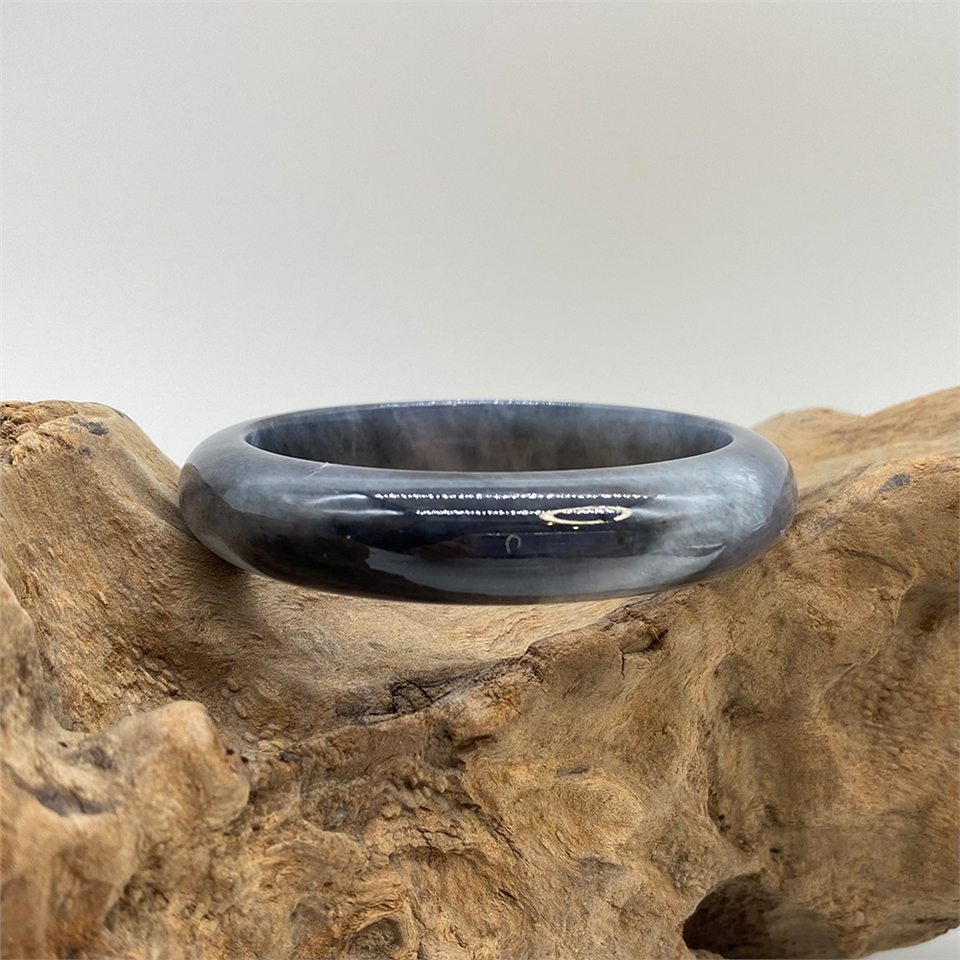 【肌容雪】天然緬甸A貨冰寬版烏雞翡翠美鐲 編號725 (鐲寬55mm #17.5號)