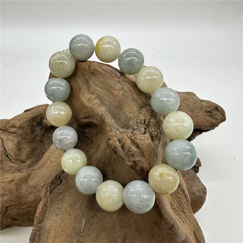 【肌容雪】緬甸天然A貨翡翠灰藍配淡黃串珠手鍊 編號733
