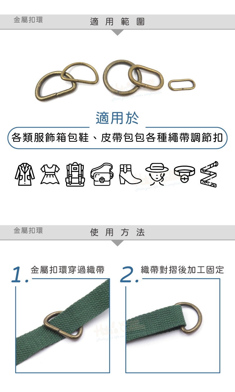 1.金屬扣環穿過織帶