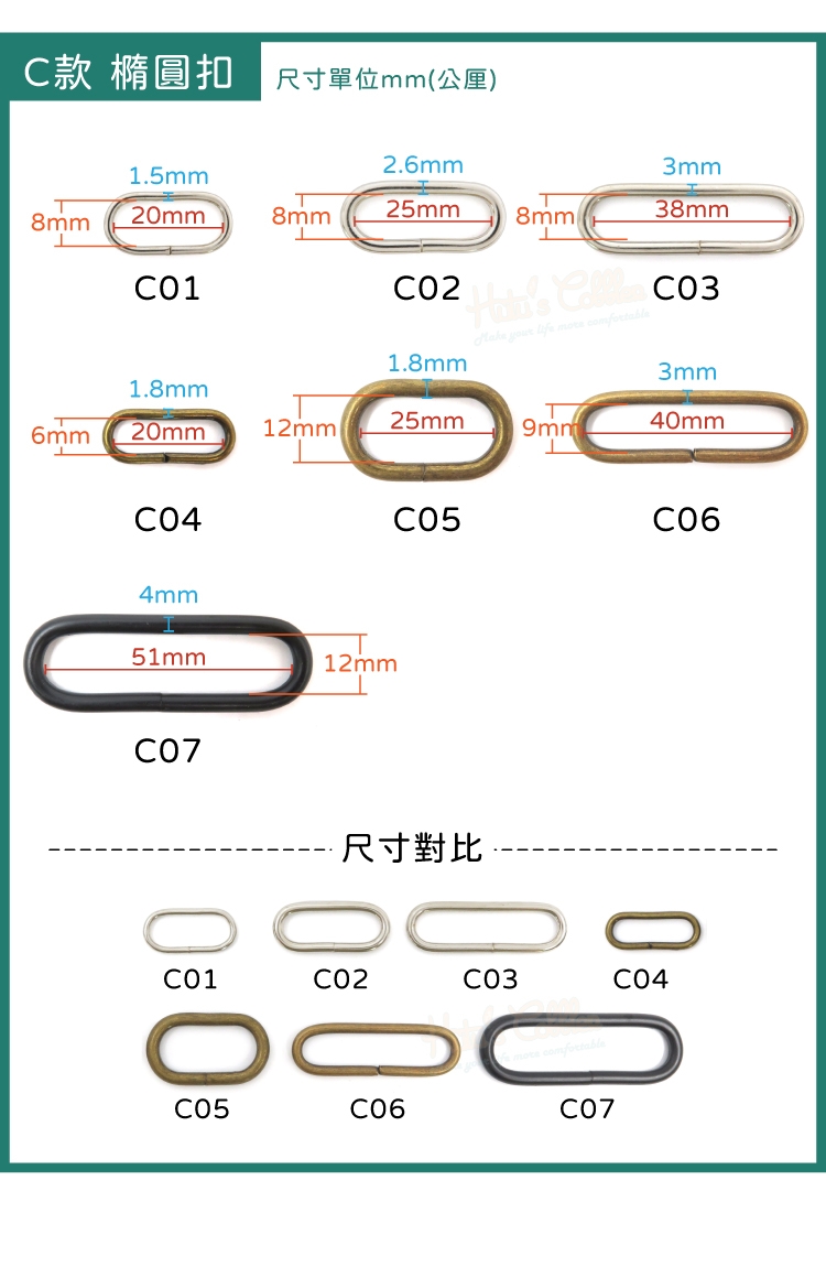 賣場還有多種扣環可選購
