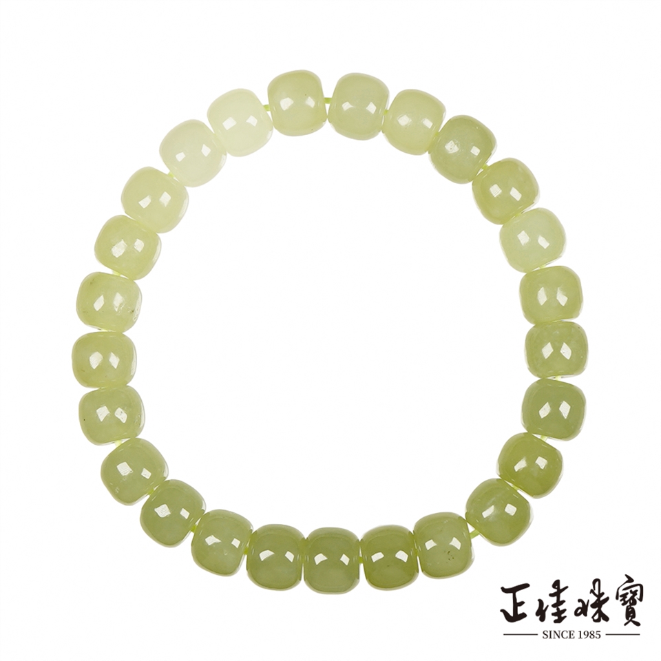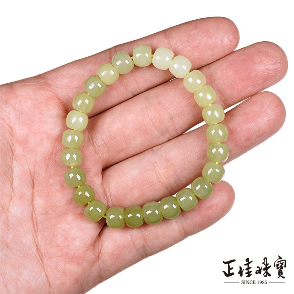 主角:和田玉青黃口料 高品漸變雅綠青黃口 19g 蘋果老型珠 和田玉手珠