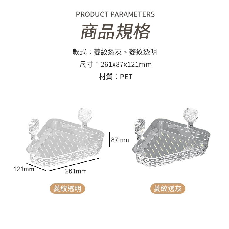 商品詳細介紹 體驗說明 不可體驗 使用方法說明 款式:菱紋透灰、菱紋透明商品尺寸:261x87x121mm材質:PET 注意事項 ◎ 貼心提醒:本商品屬一次性商品,除新品瑕疵外,一經拆封、黏貼、中間活動條推壓使用,恕無法接受退換貨。
