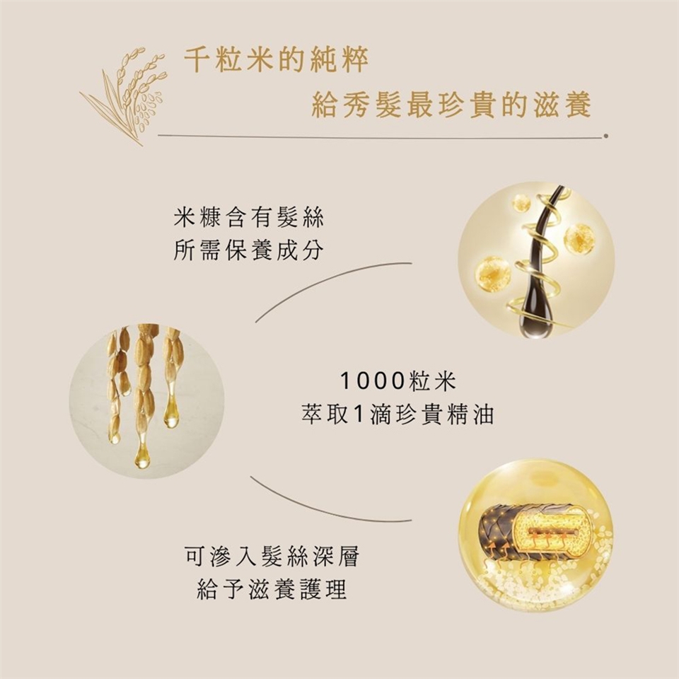 ★具高滲透力的米油能有效直達髮根毛囊核心,從髮根內部護理至頭髮外部雙重修護。