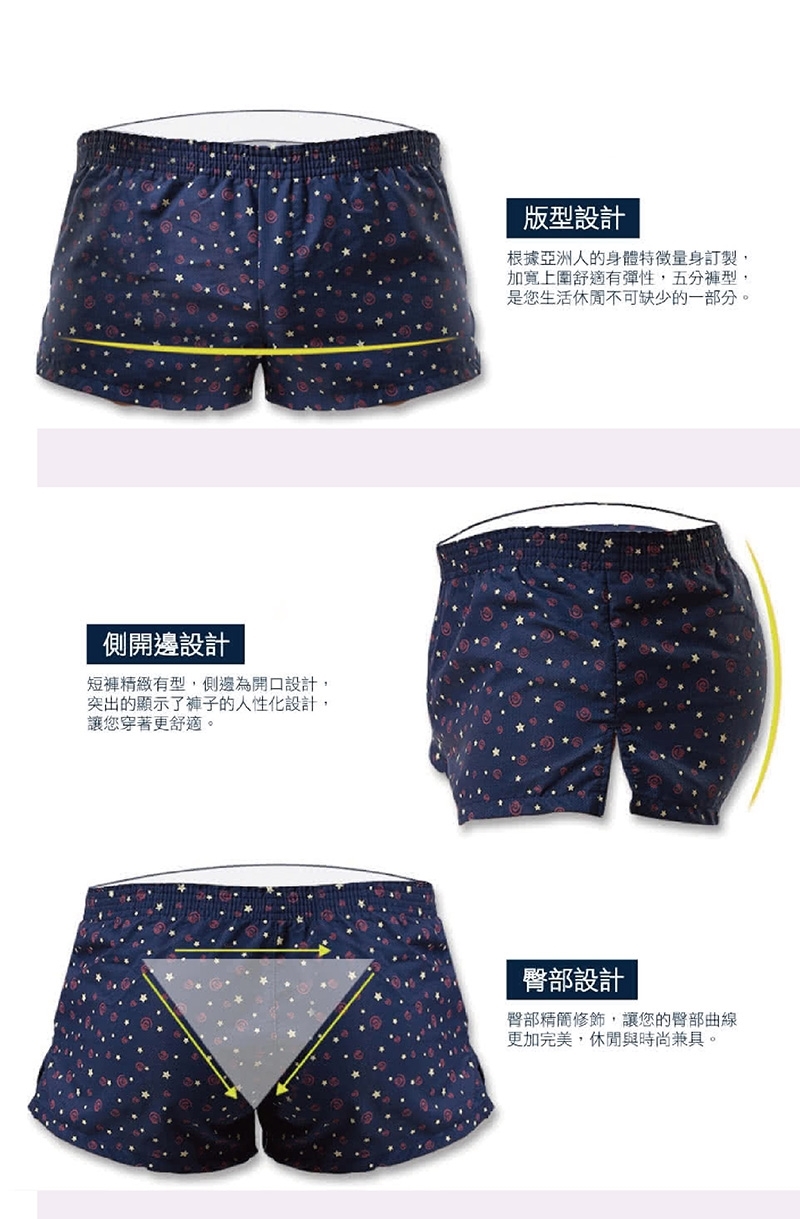 "運動休閒居家內囊袋印花四角褲(藍色-星星款)x1