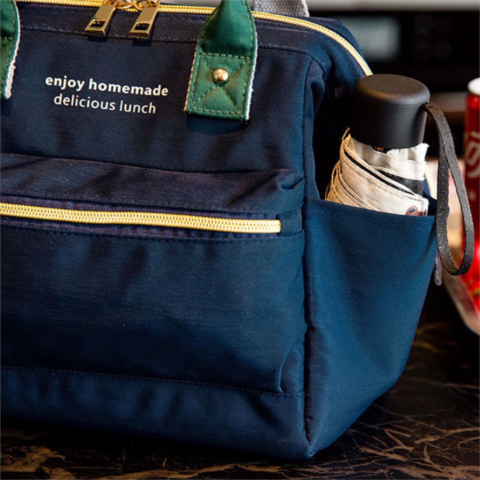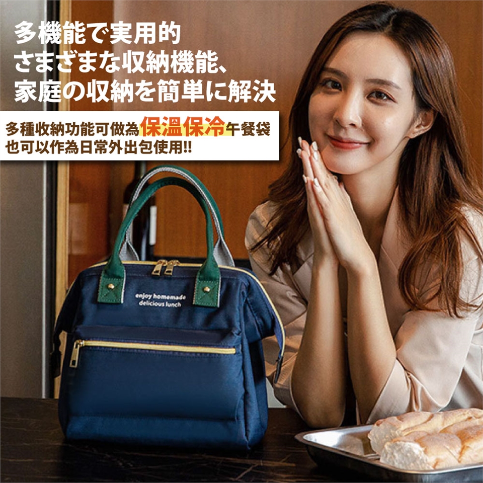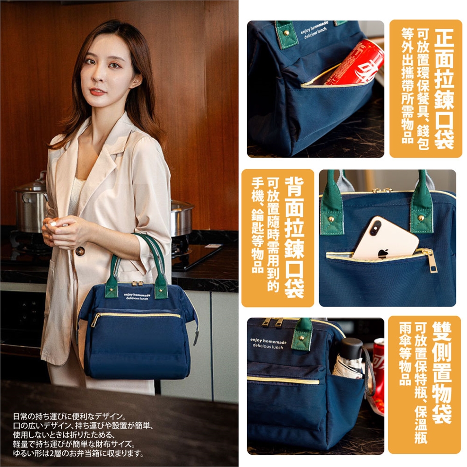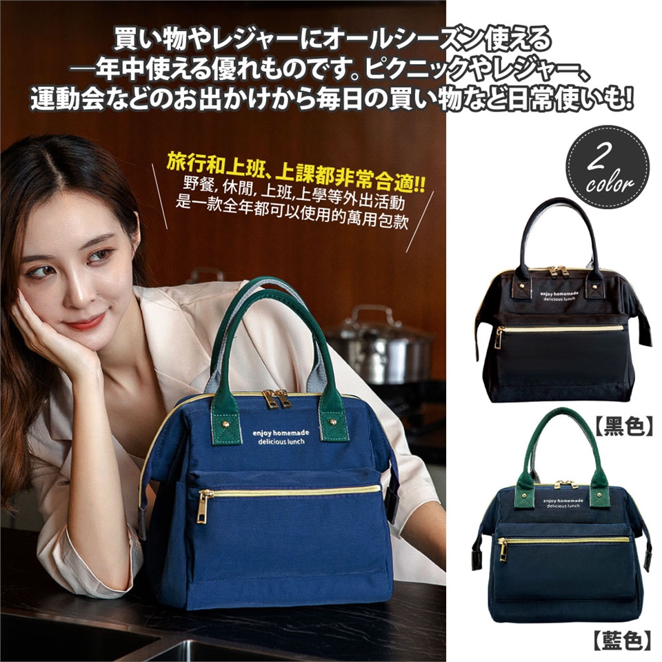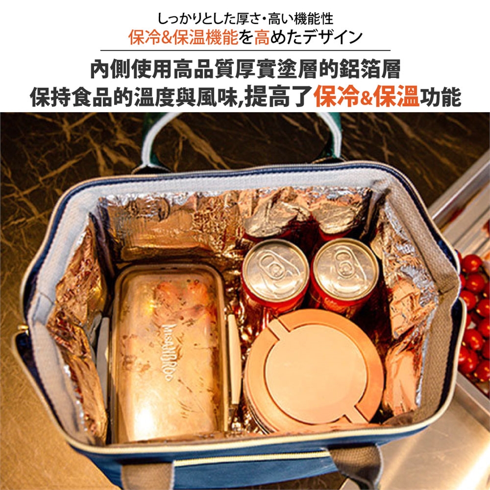 具備時尚精品封風格包款的多口袋午餐袋、野餐包,內層採用加厚型保溫保冷鋁箔、方便擦拭不怕油汙