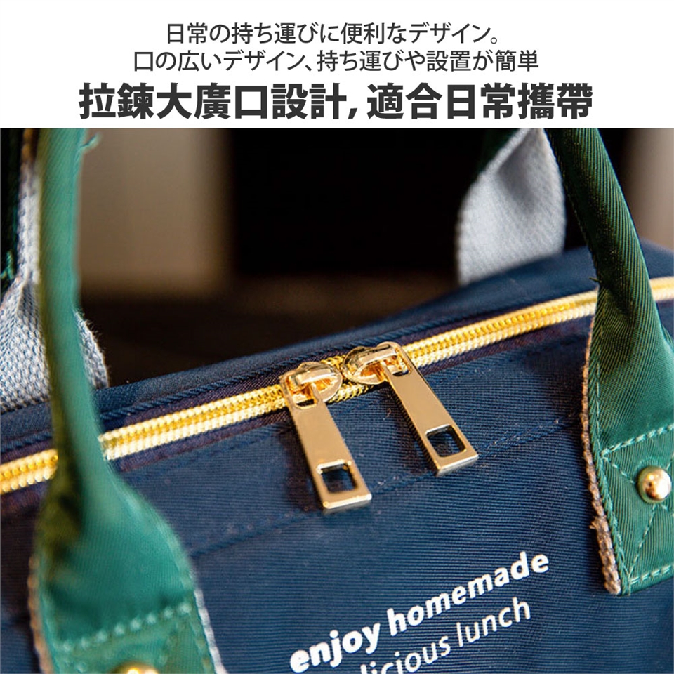 時尚外觀配色、加粗提把、玫瑰金質感拉鍊釦頭,廣口雙拉鍊好拿取大容量可當午餐袋也可當外出包