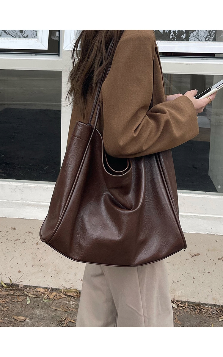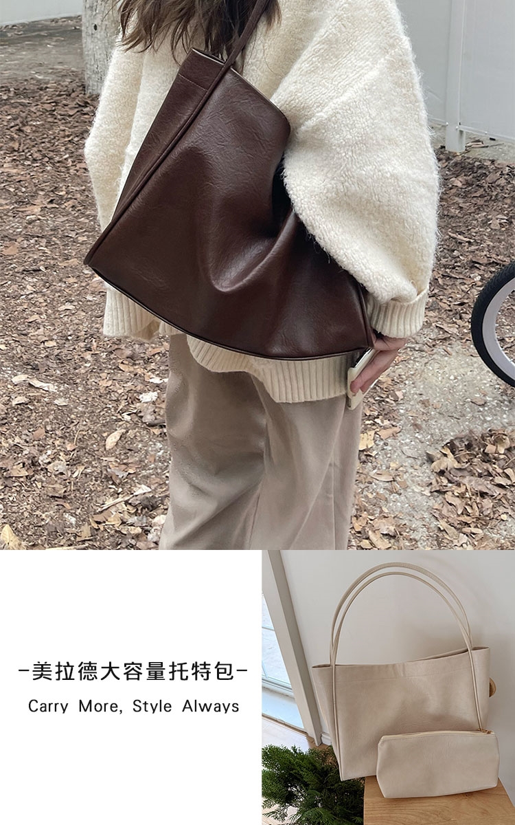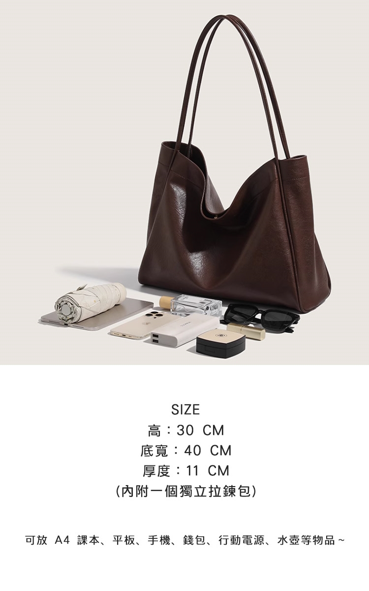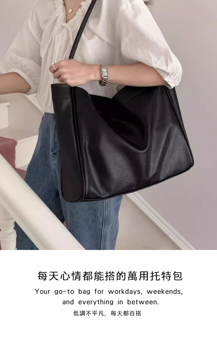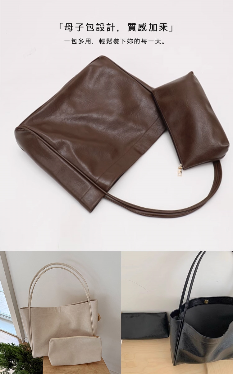 品名:美拉德風大容量托特包/軟皮腋下包/通勤單肩包