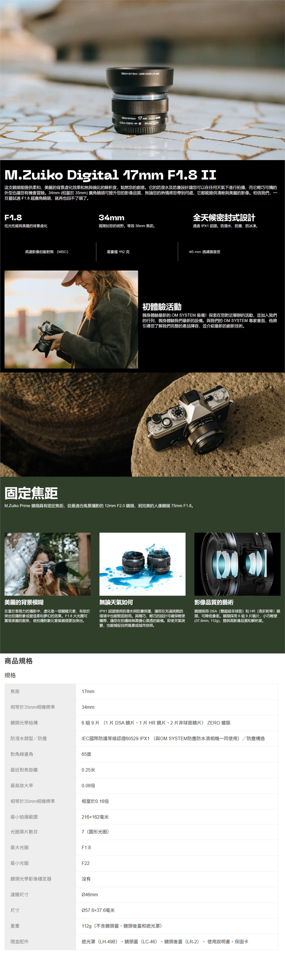 OM SYSTEM公司貨上網註冊享有12個月保固。 詳細以官網公告為https://www.yuanyu.tw/camera/service-product-registration.php《客服專線:(02)8751-5055轉1客服部》(僅限數位相機本體/鏡頭/空拍),不包含電池、電池充電器、傳輸線、相機帶、皮套...等消耗性配件依照消費者保護法的規定,網路郵購享有商品貨到猶豫期的權益。如欲辦理退貨,請勿拆封商品、請保持商品包裝(封膜)完整性。