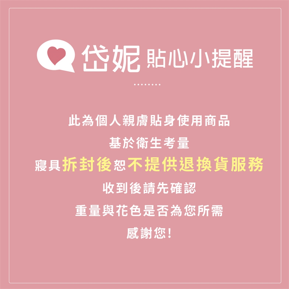 ► 基於衛生健康問題與維護顧客權益,貼身內褲、口罩、眼罩、襪子以及所有寢具商品,在您還不確定是否要辦理退貨前,請勿拆標與使用。
