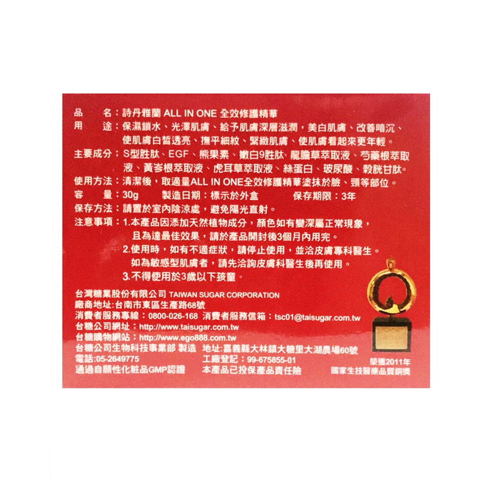 【台糖詩丹雅蘭】 All in one全效修護精華(30g)x5入(贈精萃胎盤素(10ml×2瓶)1組)