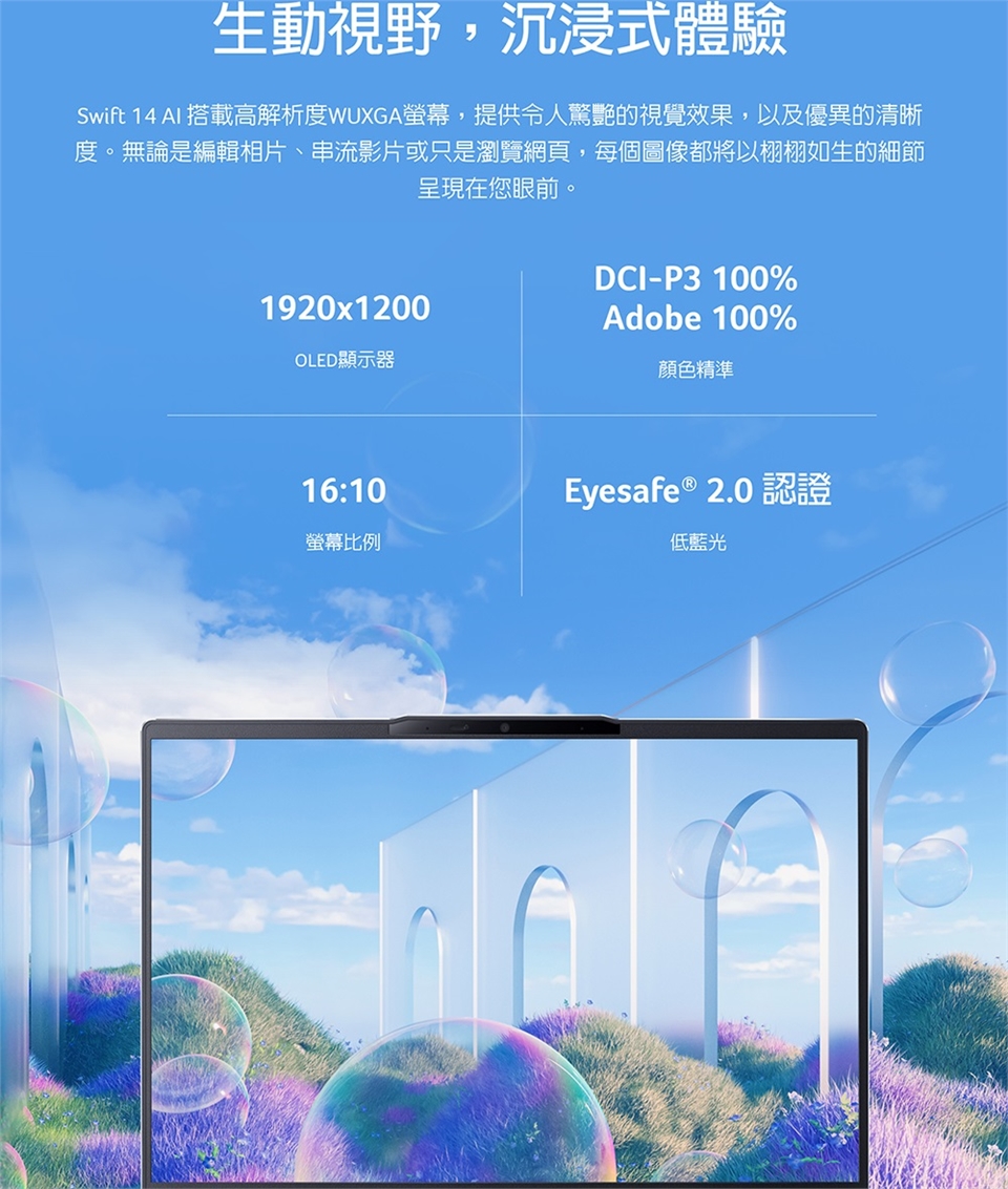 尺寸/規格:14.0"/16:10/OLED/90Hz/鏡面