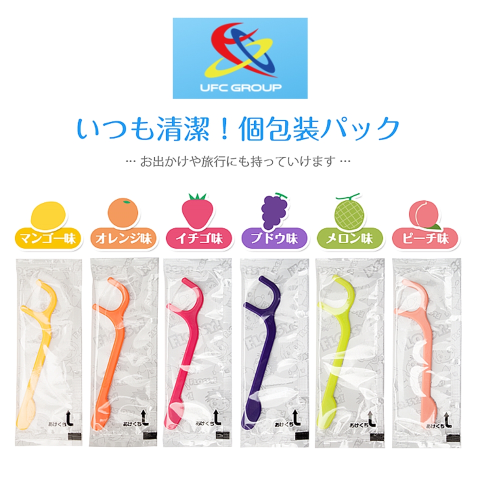★6 種水果口味牙線棒(芒果、柳橙、草莓、葡萄、哈密瓜、水蜜桃)。