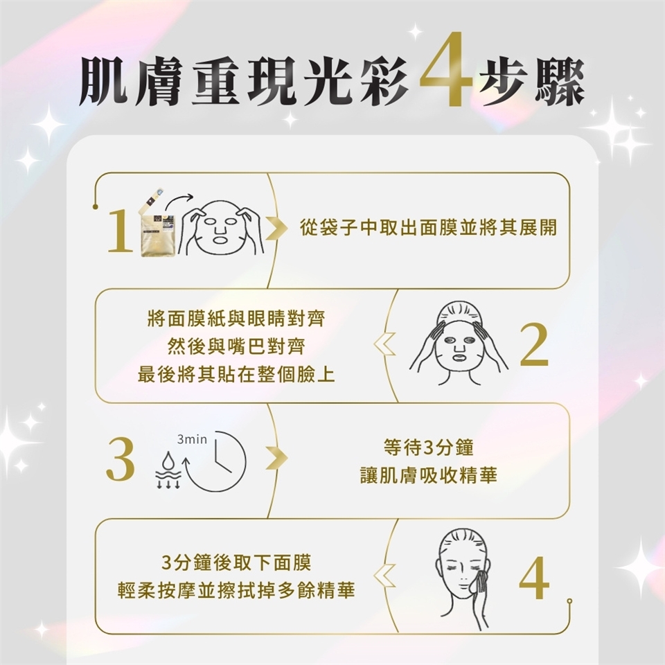 2.靜待3分鐘後取下面膜,再將臉部精華液按壓吸收。