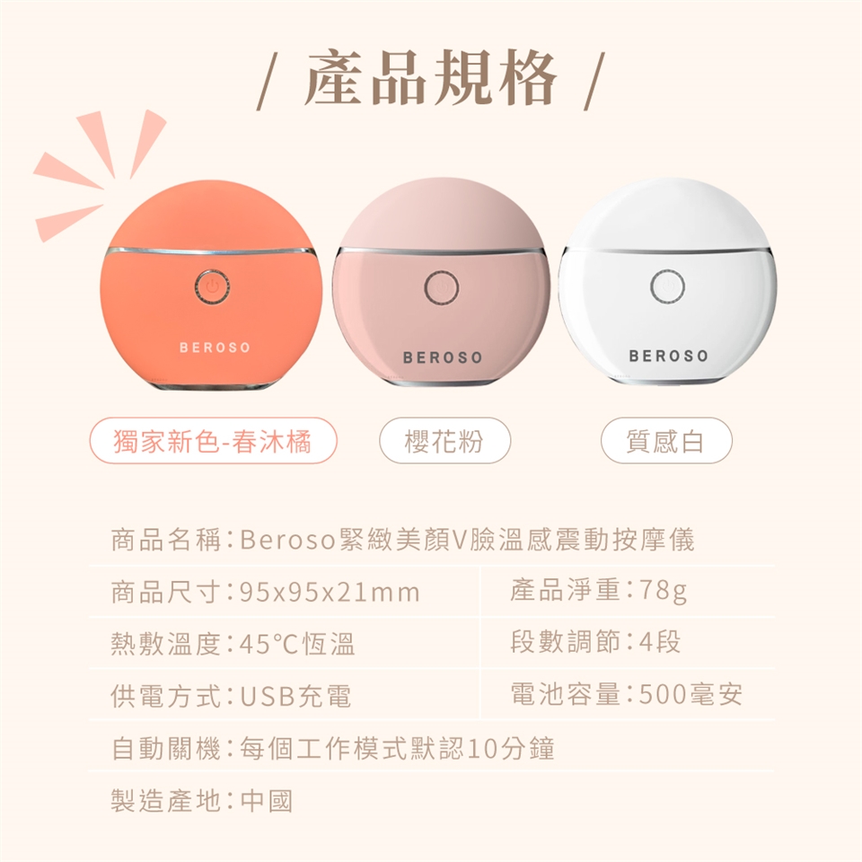 商品名稱:Beroso倍麗森 緊緻美顏溫感震動按摩儀
