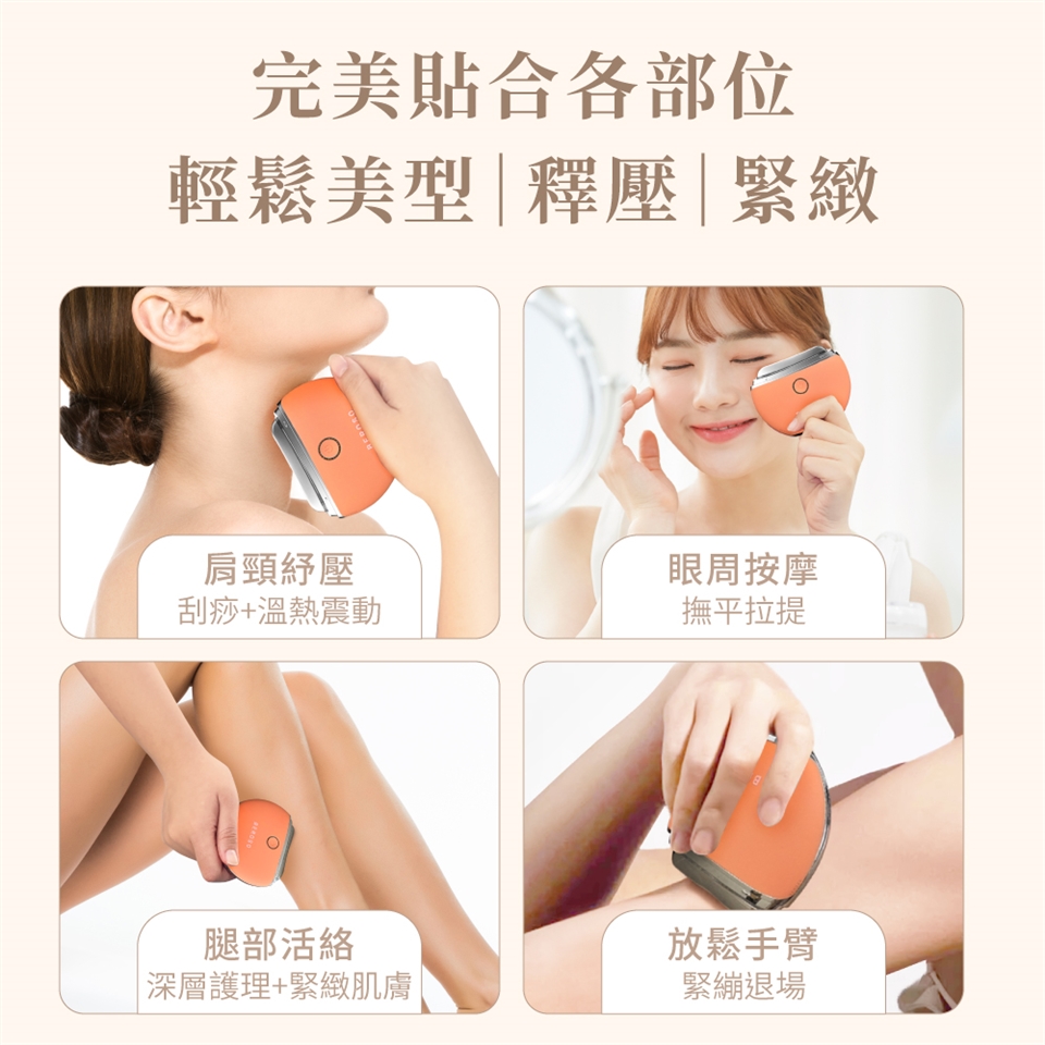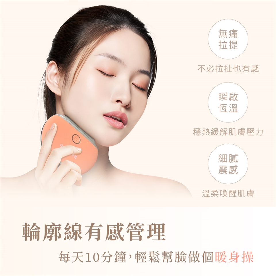 結合溫感與震動按摩,有效進行臉部肌膚護理,提升輪廓線條,打造緊緻V型小臉,增強自信美麗。