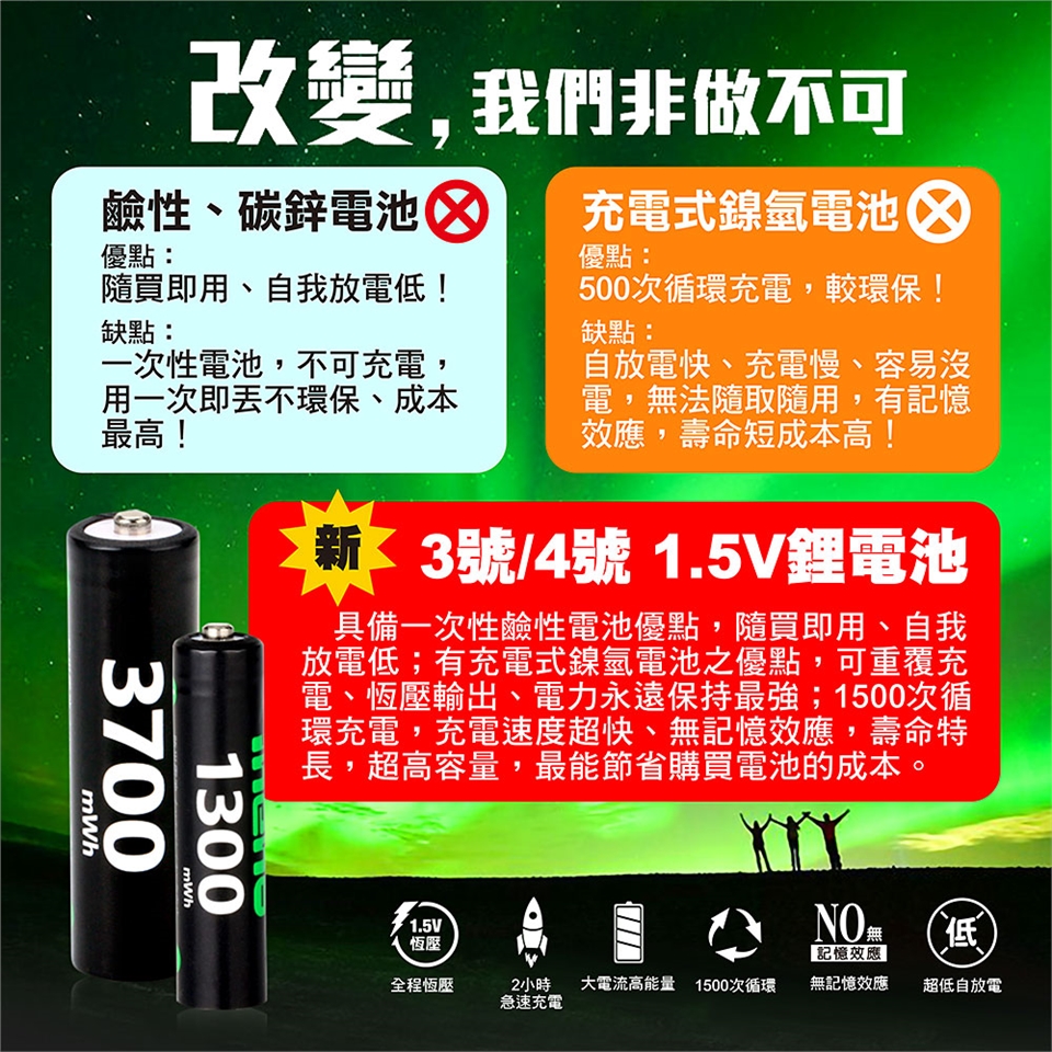 【ineno】4號/AAA恆壓可充式1.5V鋰電池: