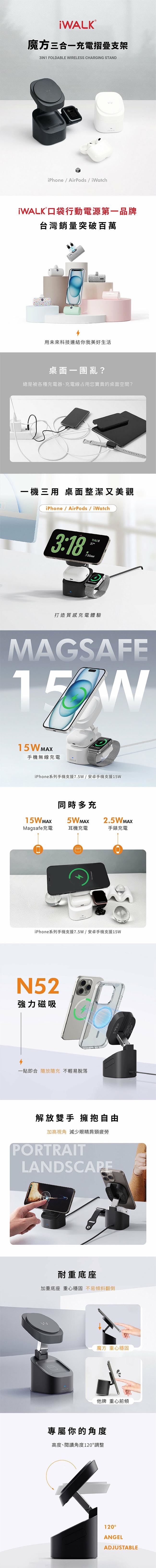 【iWALK】魔方 三合一無線充電折疊支架(附TYPE-C充電線)白色 MXS007