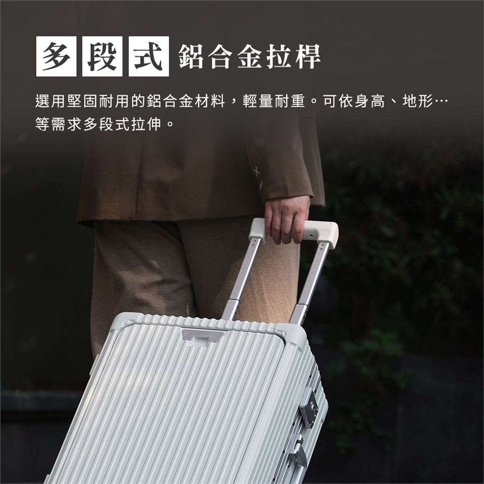 - 走到哪就能carry你到哪的多功能24吋鋁框登機行李箱