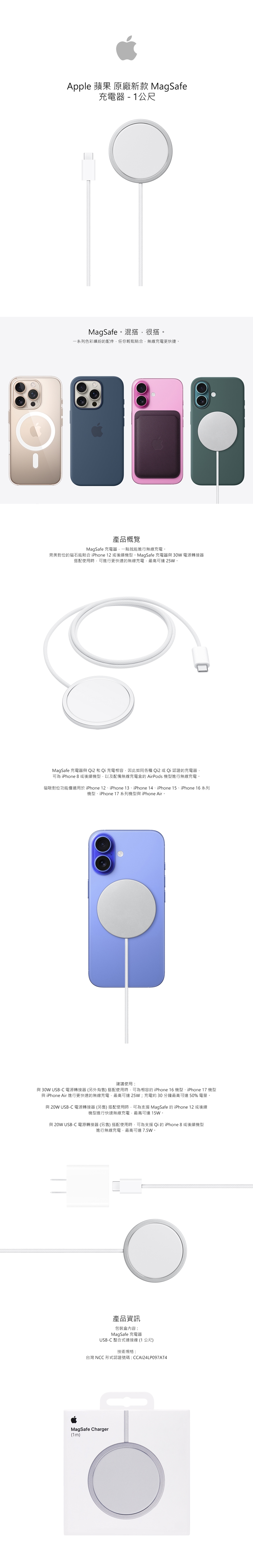 內容物:MagSafe 充電器、USB‑C 整合式連接線 (1 公尺)