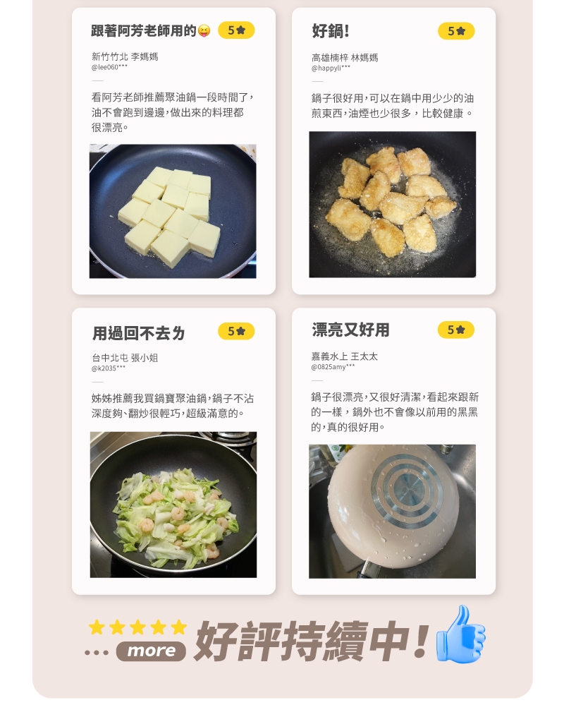 5.請避免烹調帶殼類或尖銳的食物,避免刮傷鍋具影響不沾效果。