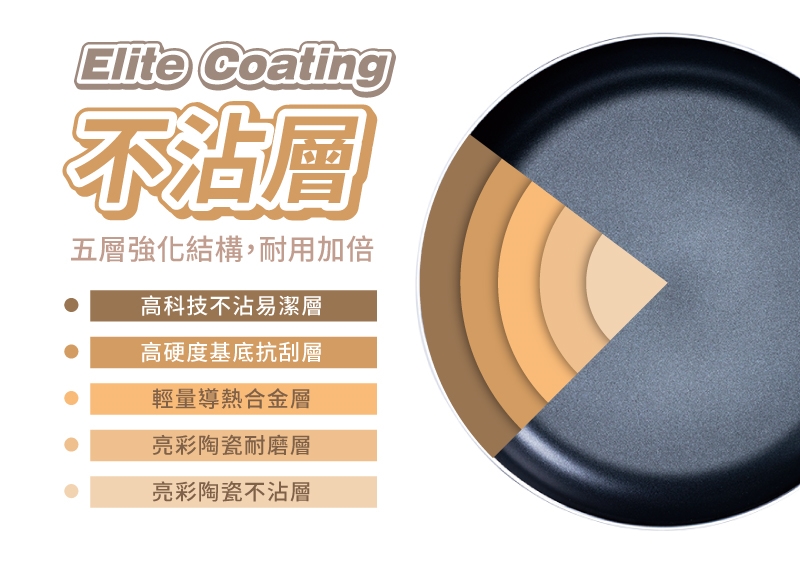 Elite Coating強化不沾技術,耐用加倍。