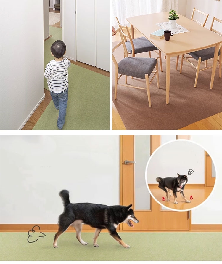 7.背面丙烯酸樹脂材質凸起處會形成無數個細小吸盤吸附於地面,如有打蠟(尤其是固體蠟)、潮濕、水氣等會影響吸附能力,儘量在乾淨、保持乾燥的環境使用,如打蠟請在鋪設後檢查吸附效果。