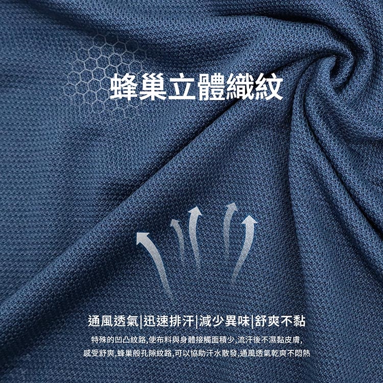 採用蜂巢透氣織法,搭配高效排汗材質,讓熱氣迅速釋放,