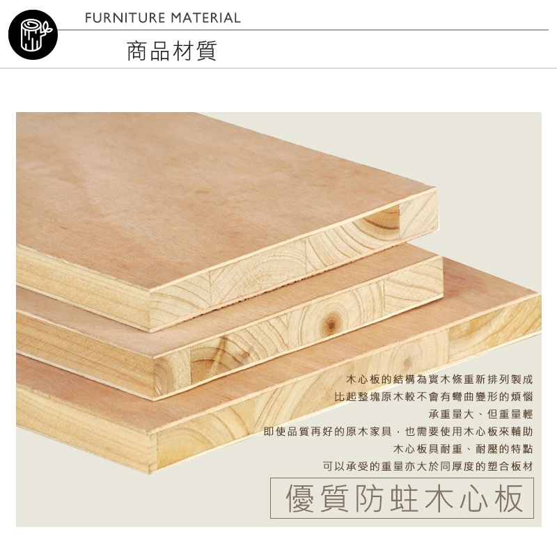 高級防蛀木心板精心製作,質地厚實,結構穩固耐用不易變形!
