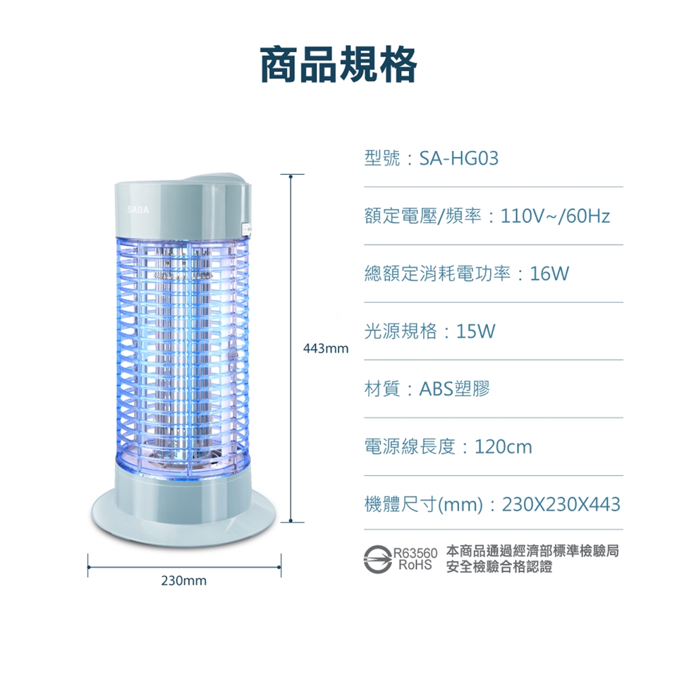 | SABA 銀離子抑菌捕蚊燈 SA-HG03 |
