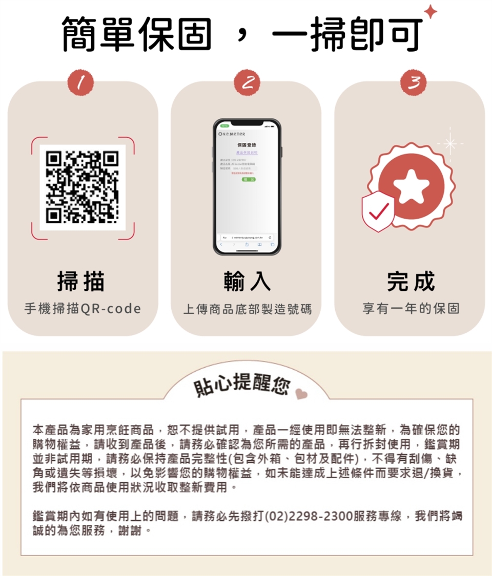 (針對人為因素造成之商品故障不在此範圍,依照服務站判定為準)