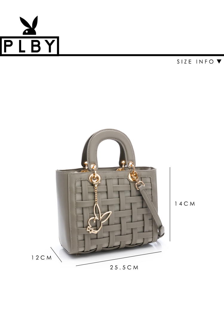 PLAYBOY - 手提包附長背帶 方格系列 - 灰色