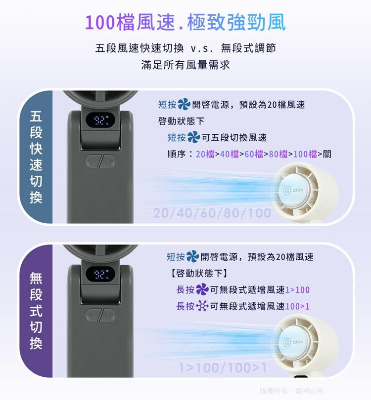 .產品名稱:aibo 半導體冰敷 折疊頸掛 100檔調速手持風扇