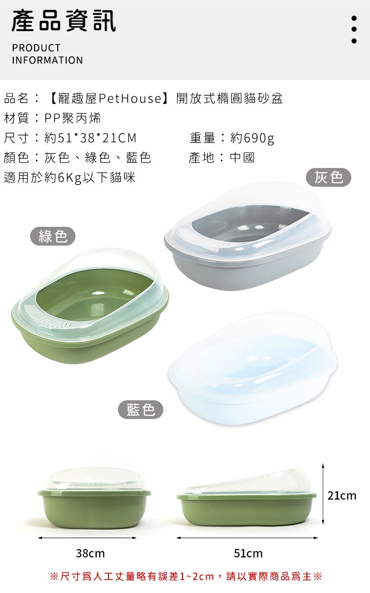 品名:【寵趣屋PetHouse】開放式橢圓貓砂盆
