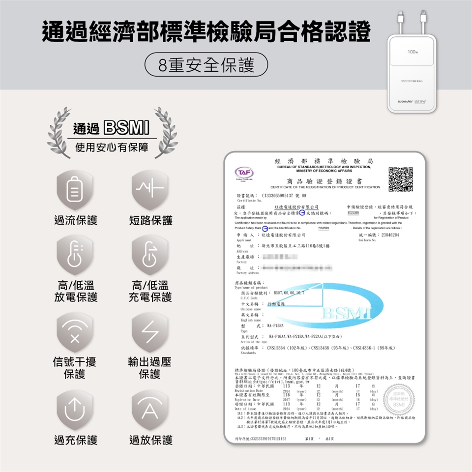 電芯容量: 10000mAh / 3.85V / 38.5Wh