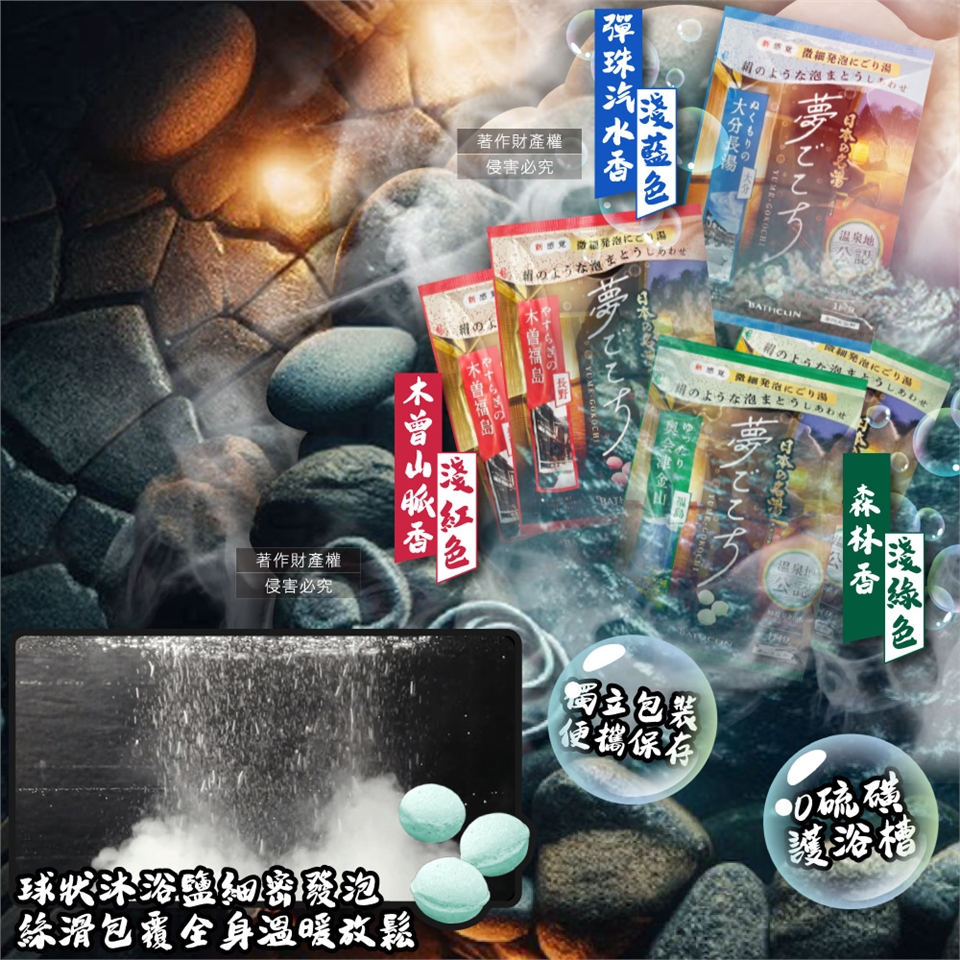 ●品名:夢幻名湯微細發泡碳酸溫泉錠入浴劑