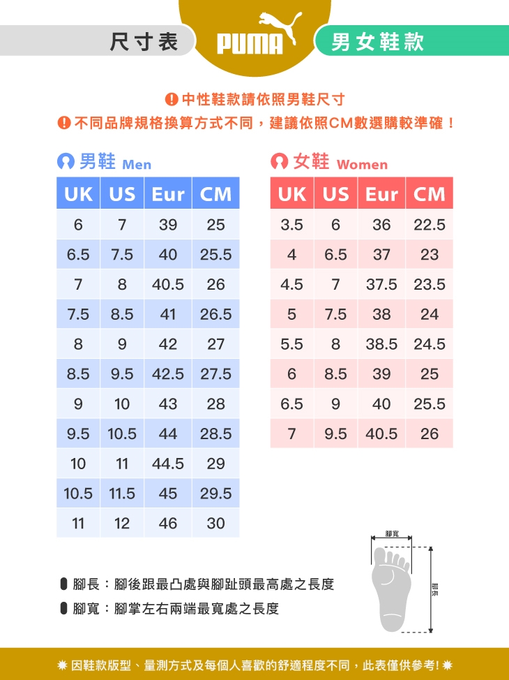 版型正常偏長,可拿與平常鞋碼一樣尺寸,腳板寬建議拿大半號