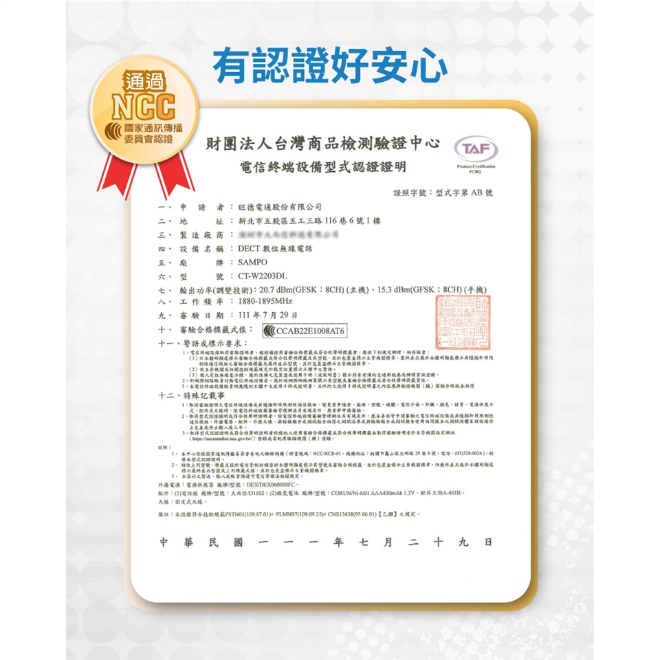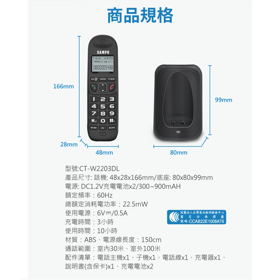 | 聲寶 聲寶DECT無線電話機 CT-W2203DL |
