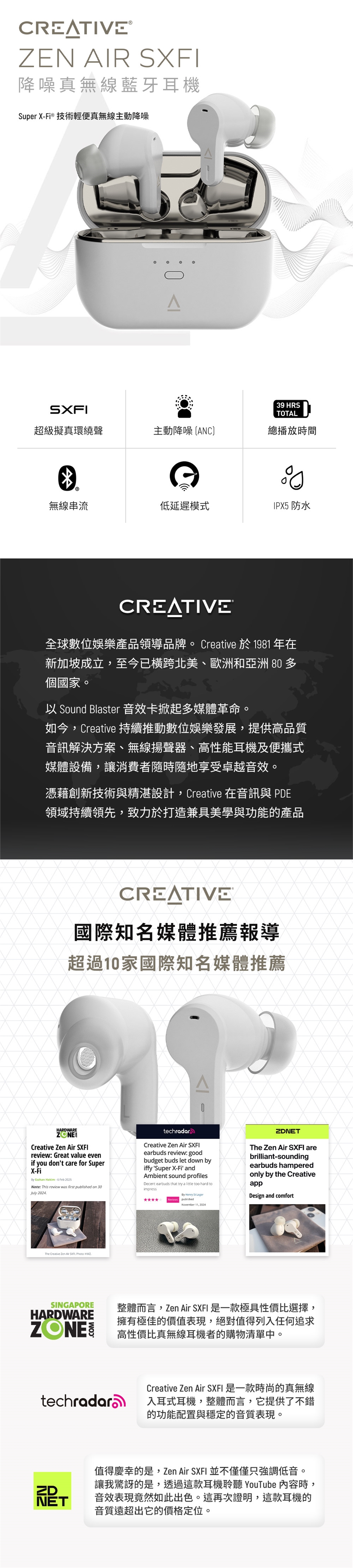 - 產品名稱:Creative Zen Air SXFI 降噪真無線藍牙耳機