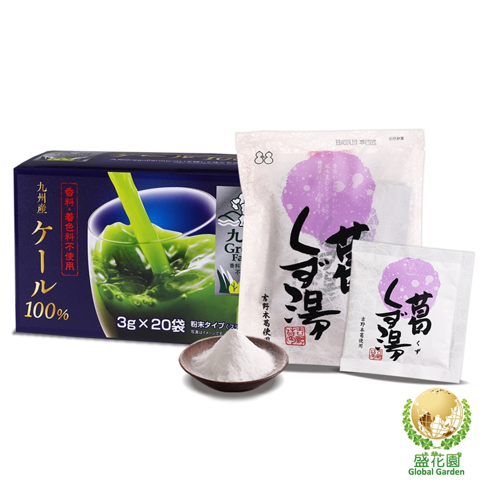 【盛花園】日本原裝羽衣甘藍青汁20入+原味葛粉 3入養生組