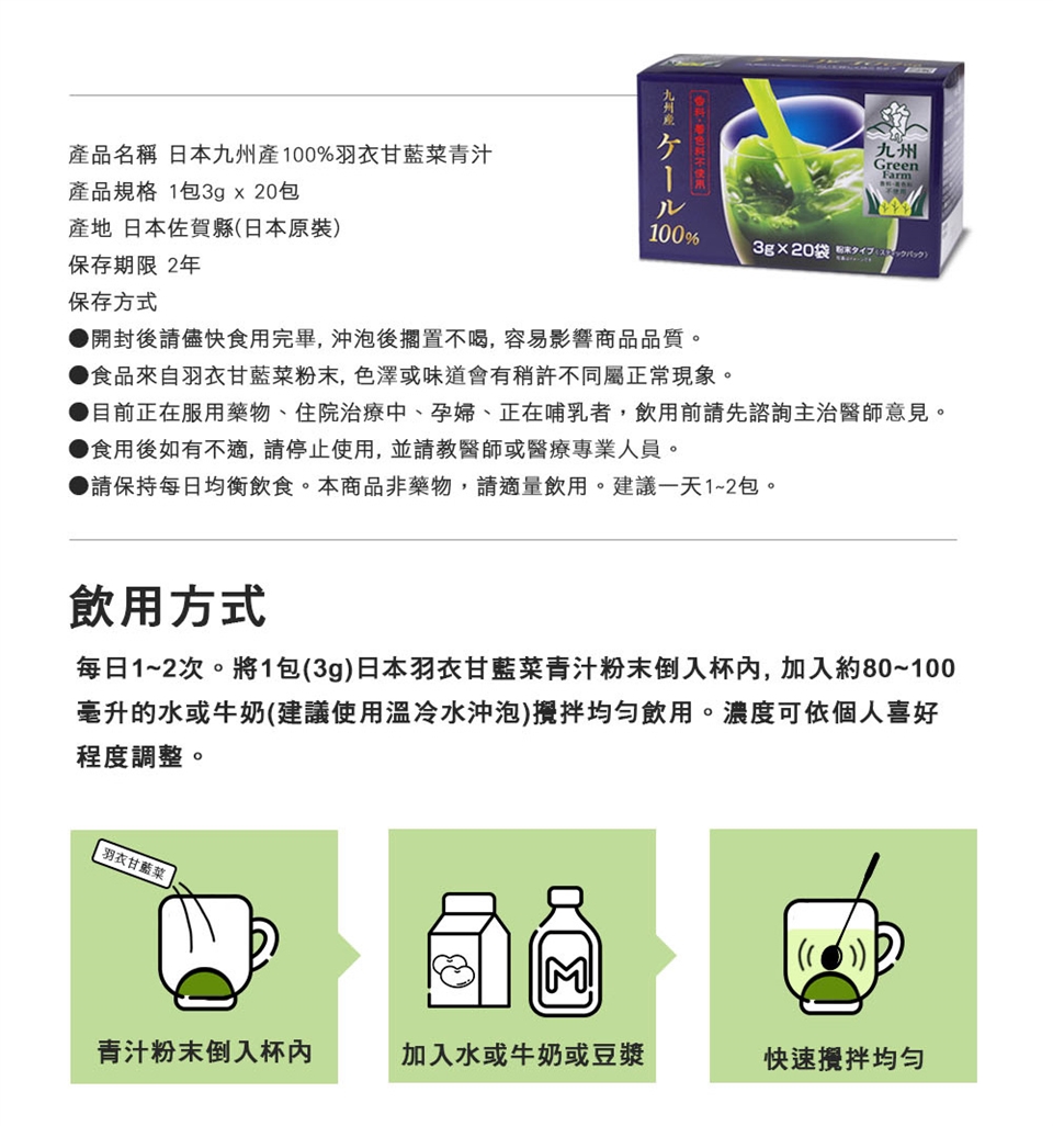 【盛花園】原裝進口-日本九州產100%羽衣甘藍菜青汁(20入組)
