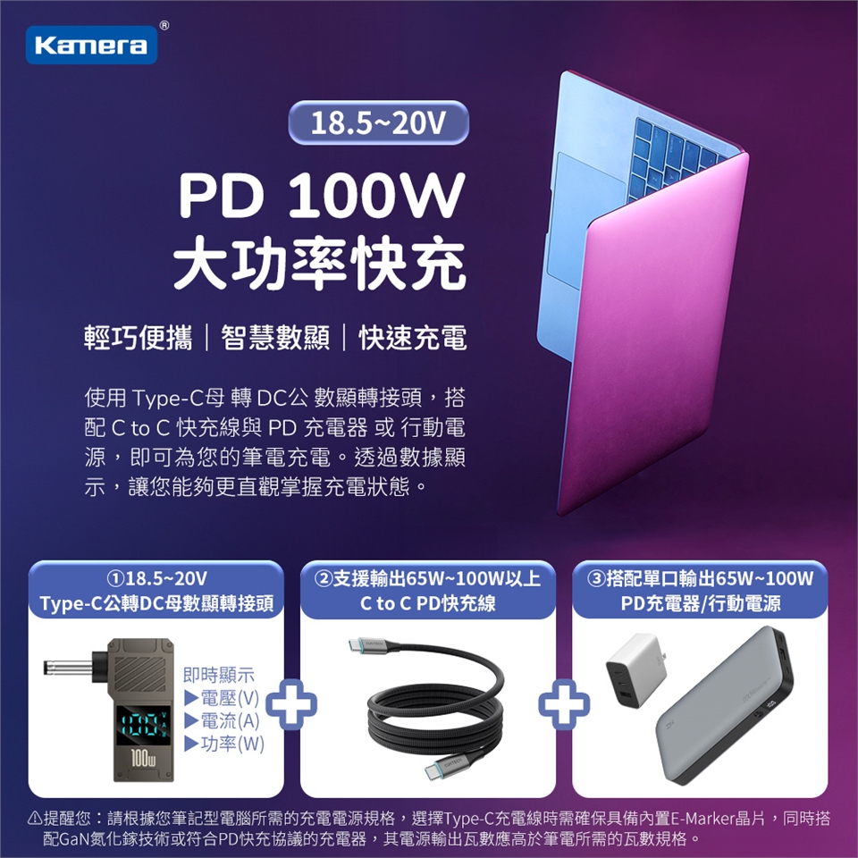 ※本商品最高支援100W,超過100W筆電不適用,為避免造成過載或無法充電使裝置損壞,請勿使用。