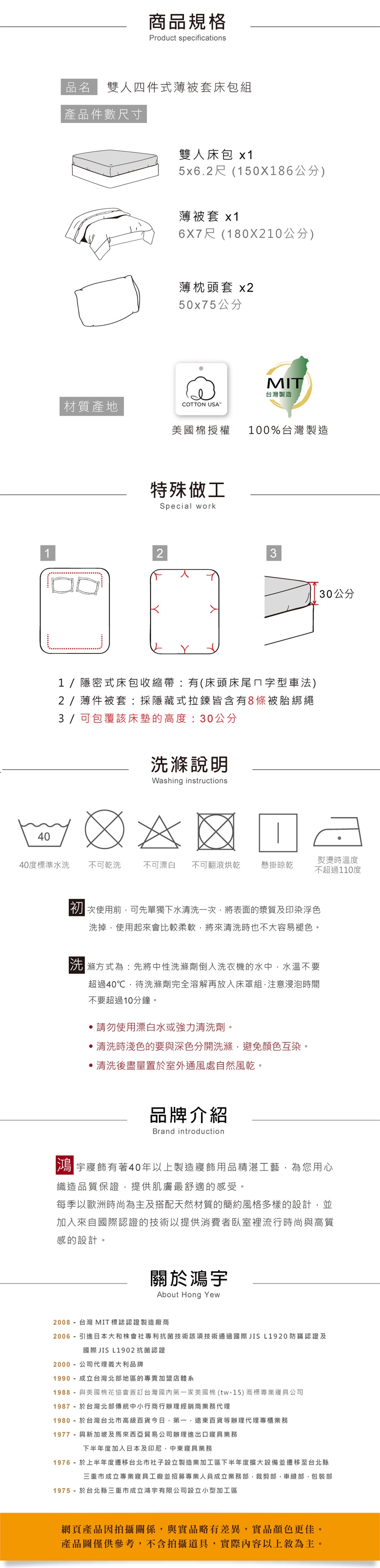 洗滌方式:先將中性洗滌劑倒入洗衣機的水中,水溫不要超過40度C,待洗滌劑完全溶解再放入床包組,注意浸泡時間不要超過10分鐘。