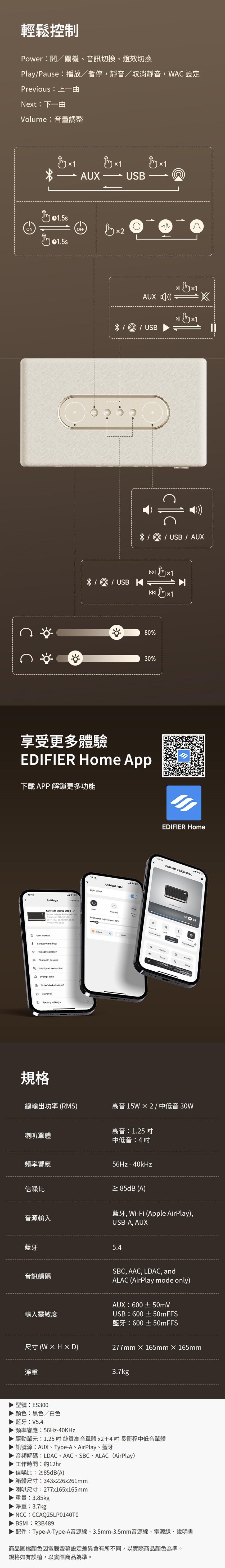 EDIFIER 漫步者 ES300 藍牙串流喇叭
