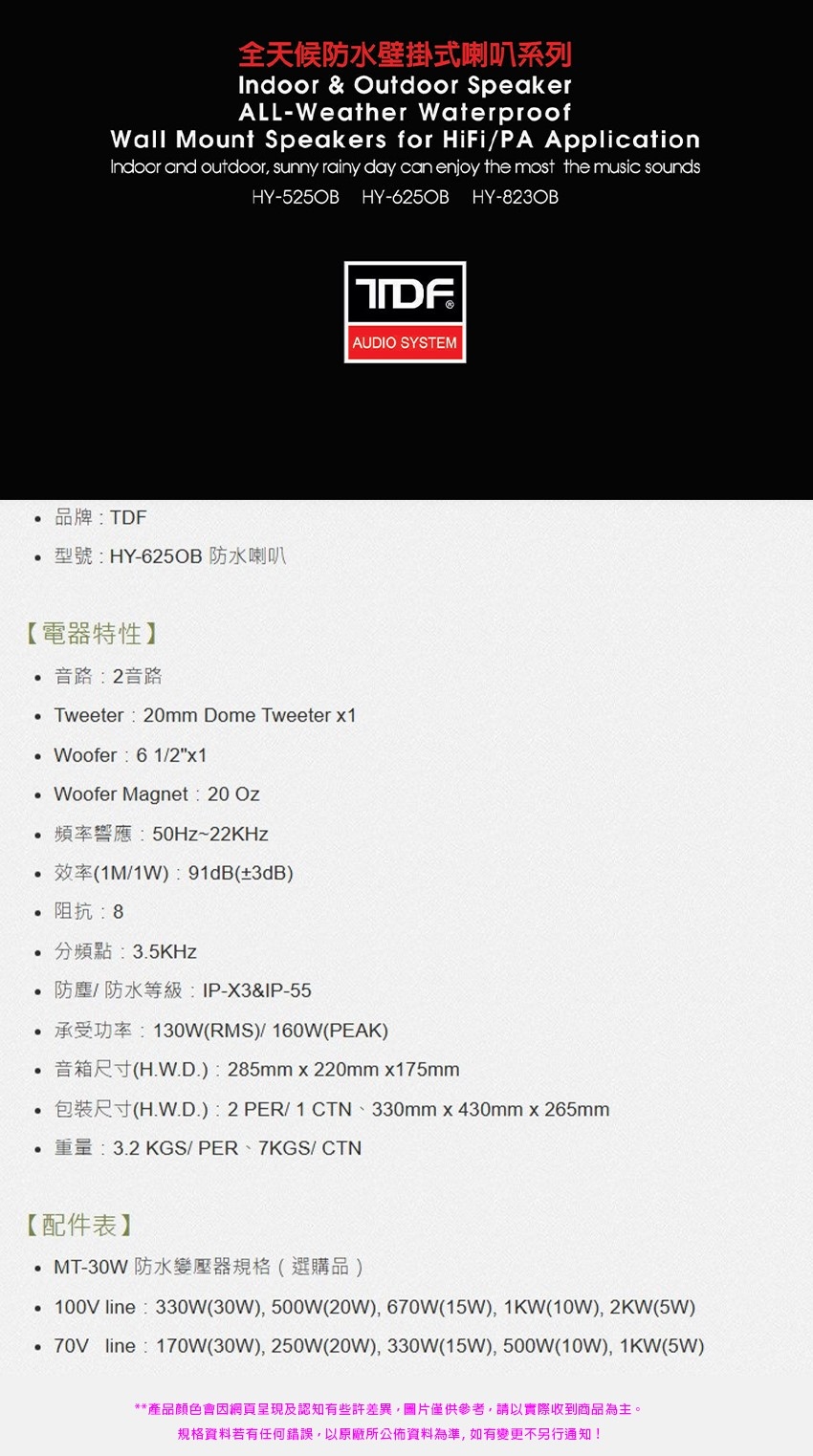 TDF HY-625OB 吊掛式/防水/商用空間/卡拉OK喇叭/對