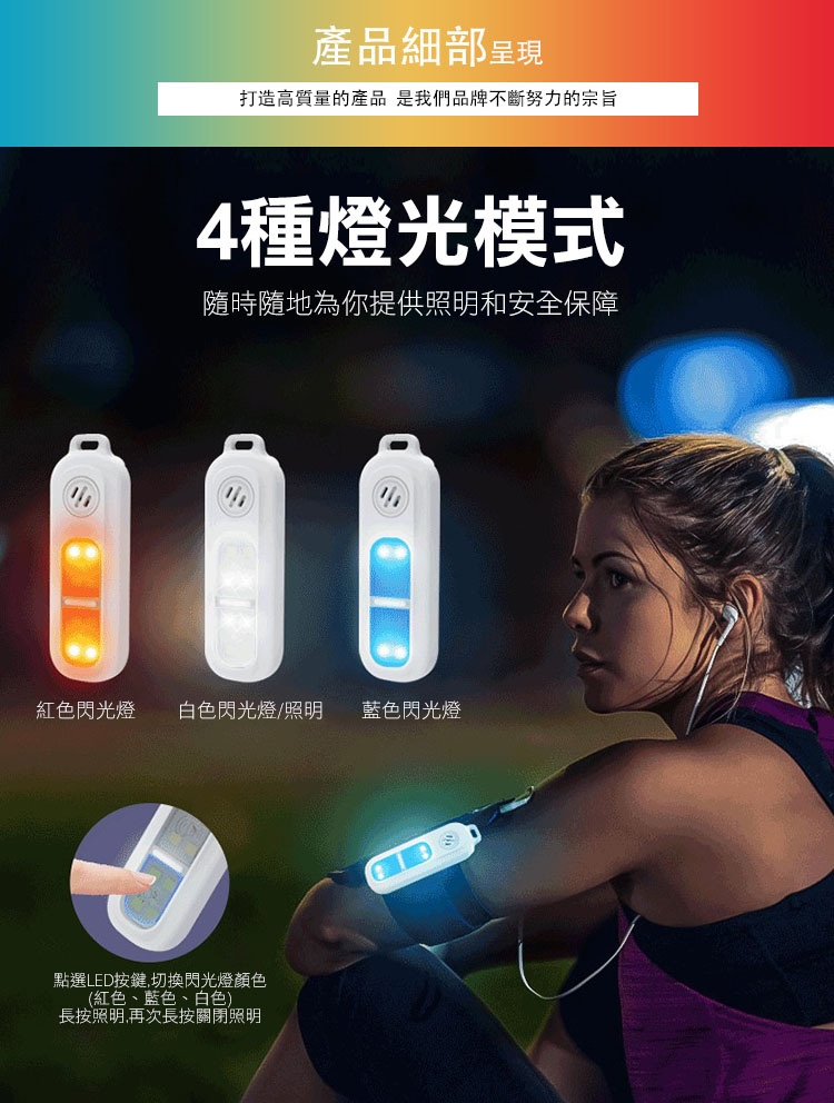 01.夜跑警示燈三種光源+1照明安心又安全