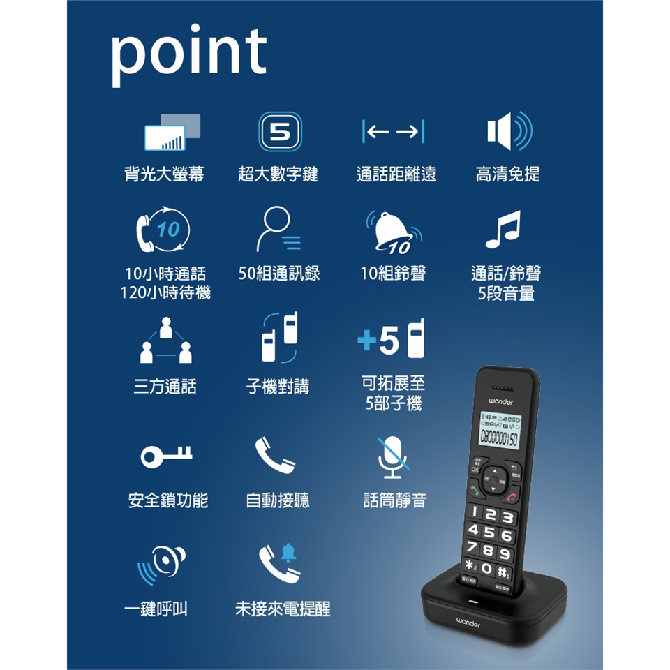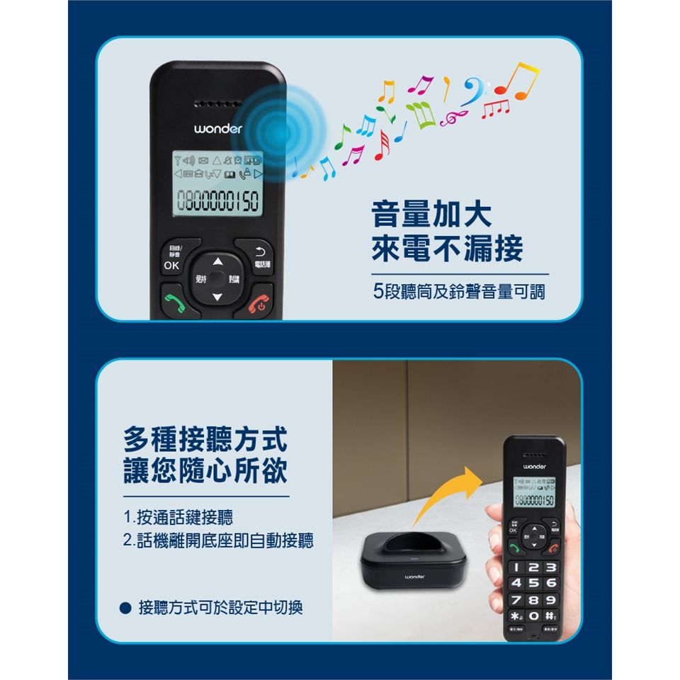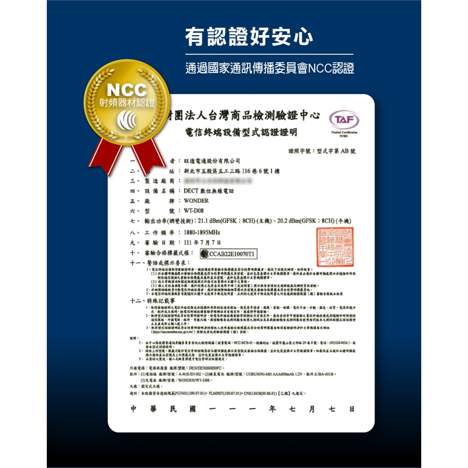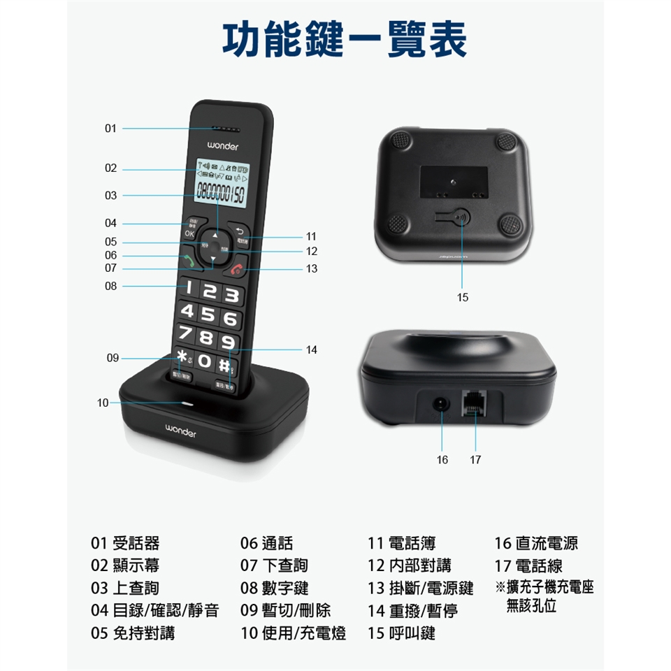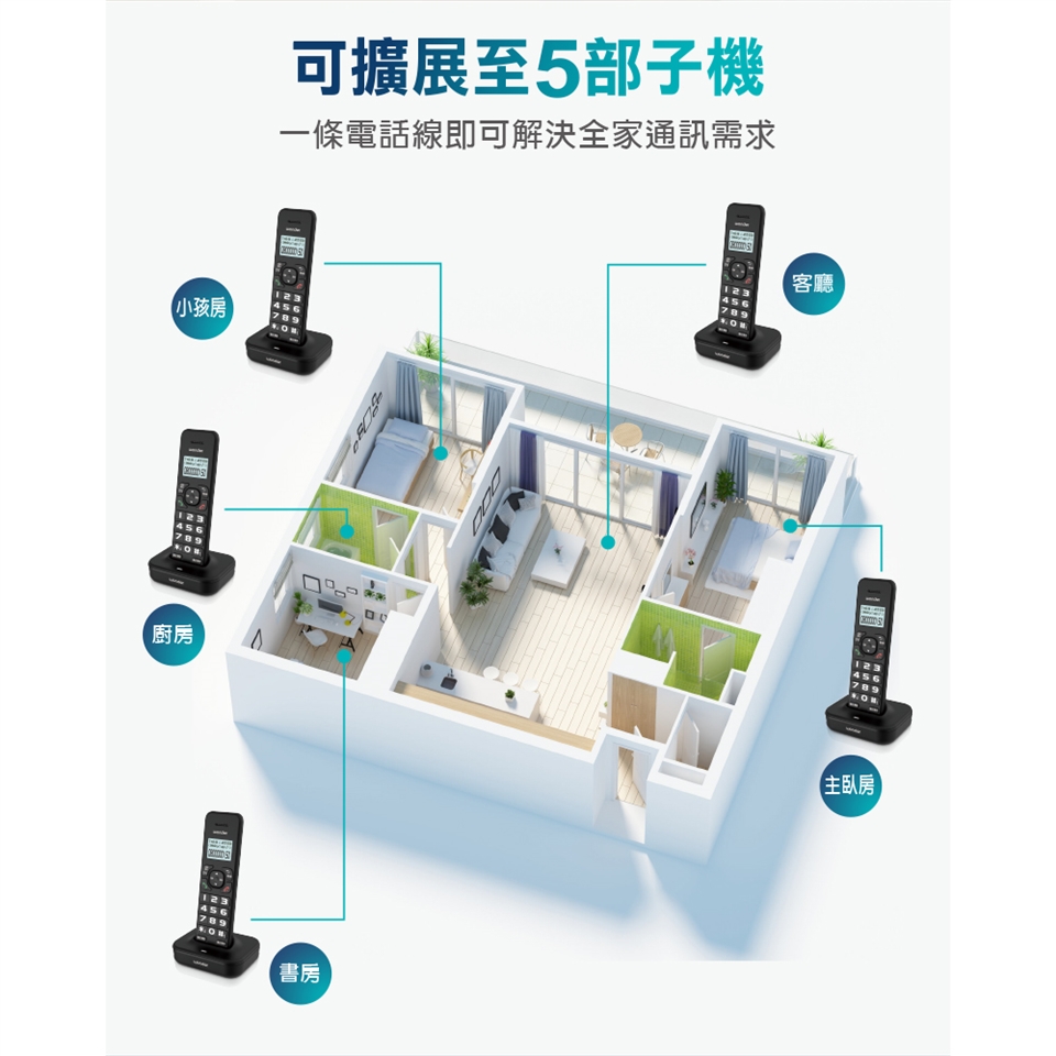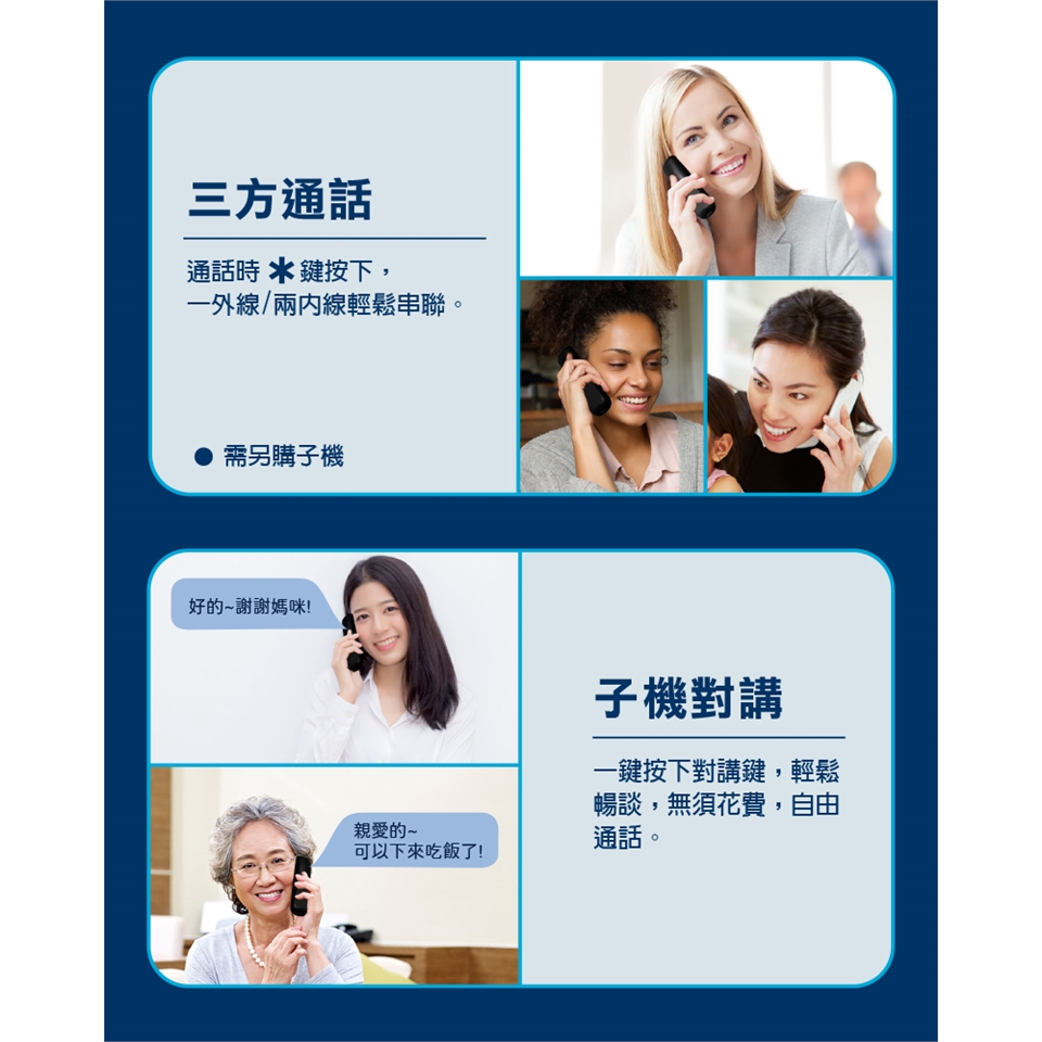 配件清單: 充電座*2、電話主機*2、電話線*2、充電器*2、說明書(含保卡)*1、充電電池*4