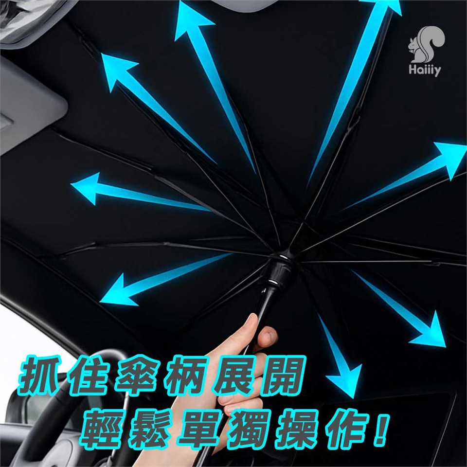 固定位置:將傘柄放置於中控台處,傘骨展開後自然貼合前擋。
