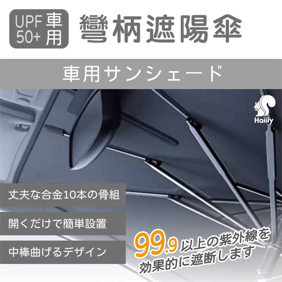 Haiiiy UPF50 車用彎柄遮陽傘,採用高規格隔熱鋁膜材質,