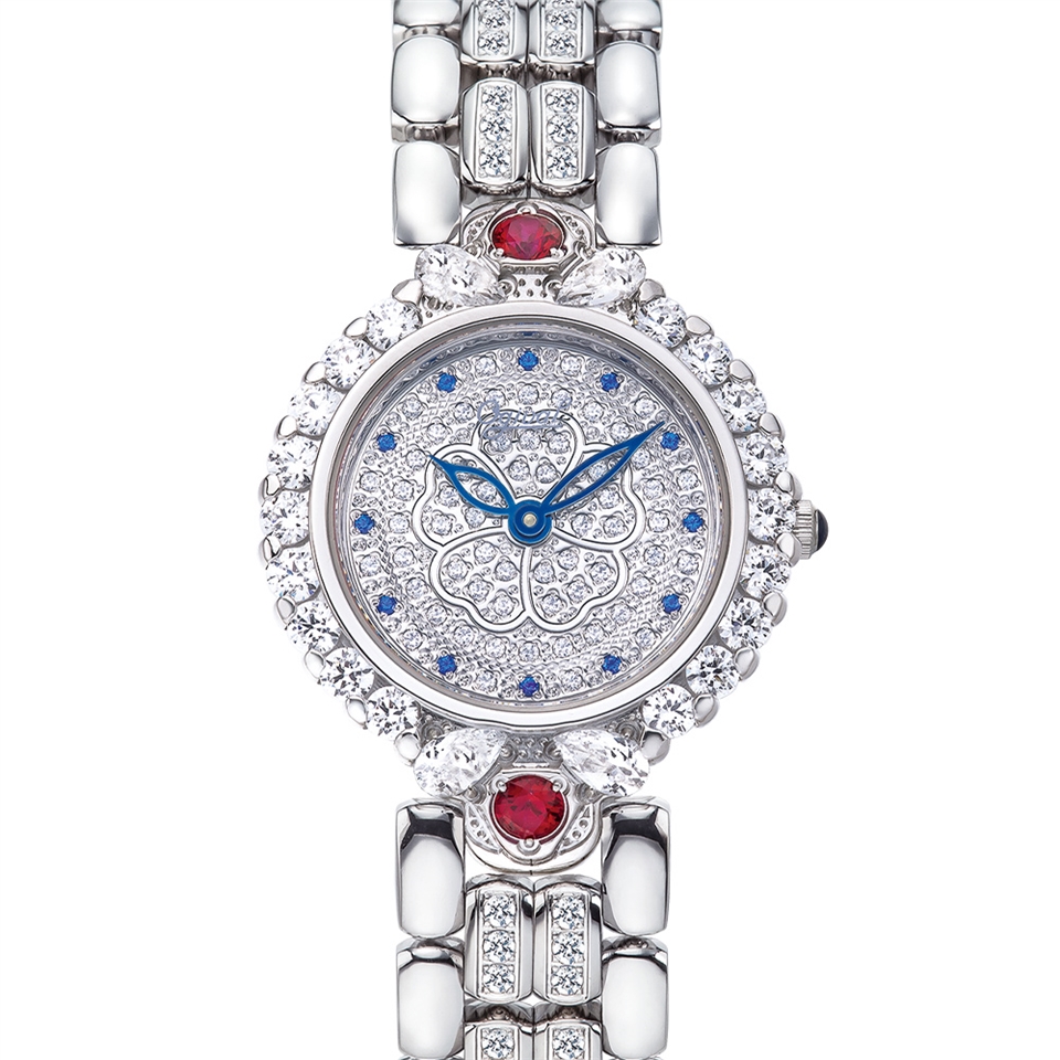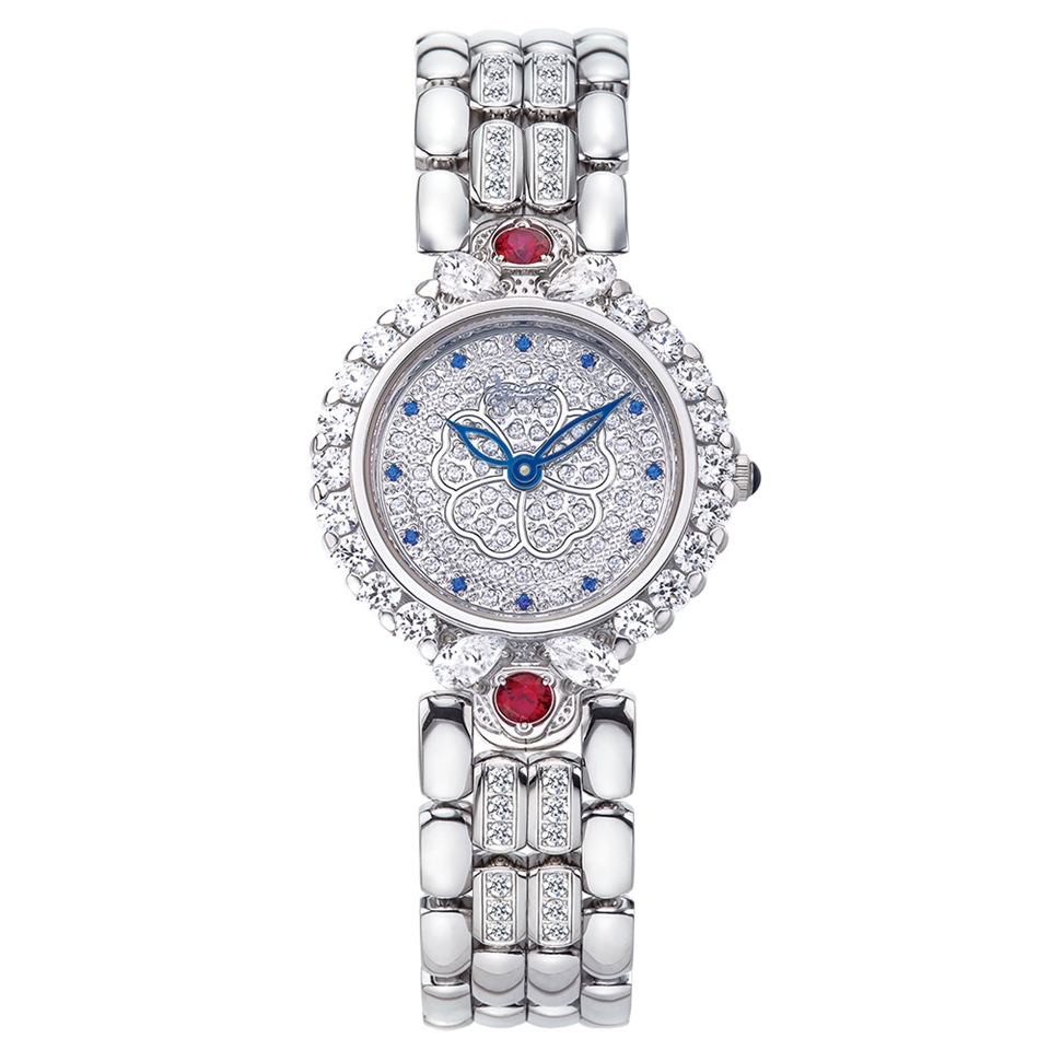 【Ogival 愛其華】山茶花系列 滿天星鑲鑽山茶花珠寶錶 銀色