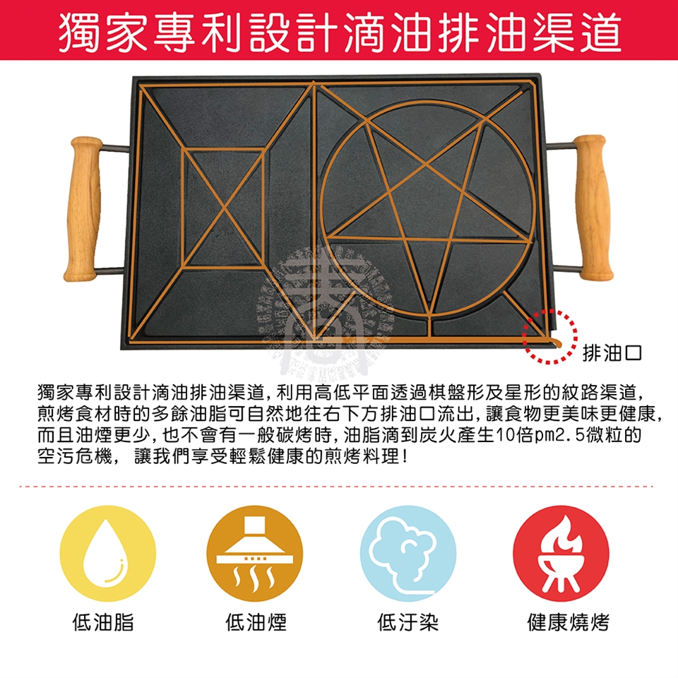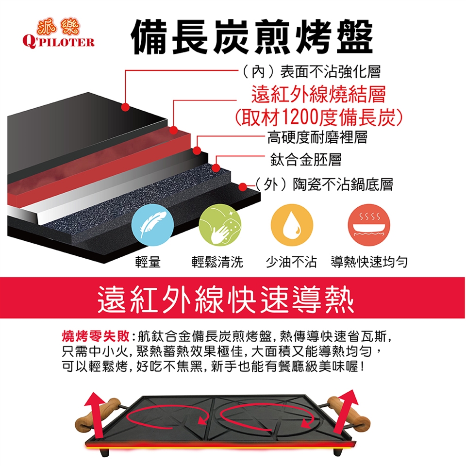 商品組合:遠紅外線備長炭煎烤盤(贈矽膠烤肉夾+醬油刷+清潔刷)